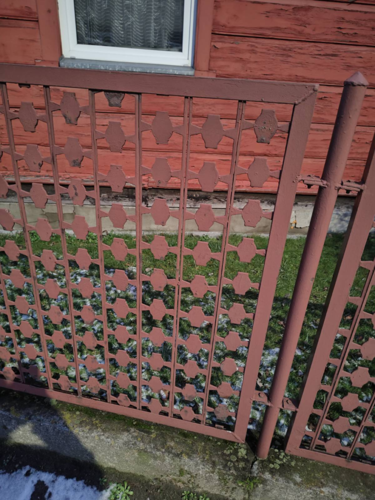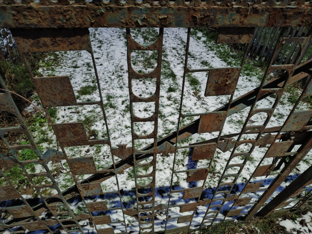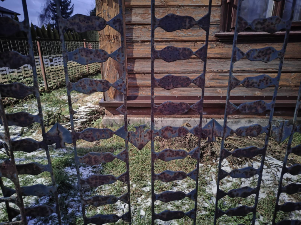 Okazuje się, że pochodzenie tych płotów jest dość praktyczne – są to elementy odpadowe arkuszy blachy wykorzystywanych najprawdopodobniej w okolicznym zakładzie ZREMB do produkcji części do maszyn.